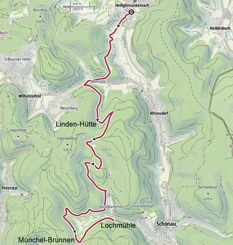 Heiligkreuzsteinach (ev. Kirche) nach Schönau (Parkplatz Lochmühle)