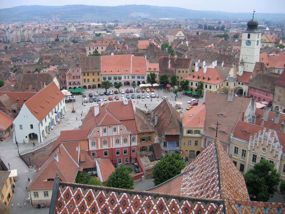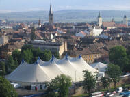 Altstadt von Sibiu (Hermannstadt) in Rumänien. Das Zelt im Vordergrund diente für Veranstaltungen zur europäischen Kulturhauptstadt 2007. |