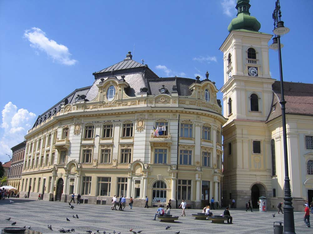 Neues Rathaus am Piata Mare ("Großer Ring") in Hermannstadt. Das Rathaus wurde 2006 renoviert. |