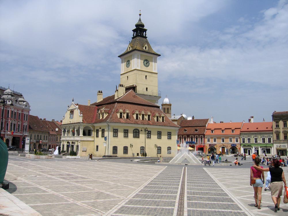 Die siebenbürgische Stadt Brasov (Kronstadt) mit seinem ehemaligen Rathaus. Heute ein beliebtes Fotomotiv für Brautpaare. |