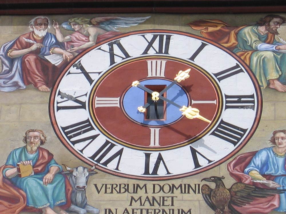Turmuhr der "Schwarzen Kirche" von Kronstadt. Die 1385 erbaute Kirche verdankt ihren Namen einem Brand im 17. Jh. |