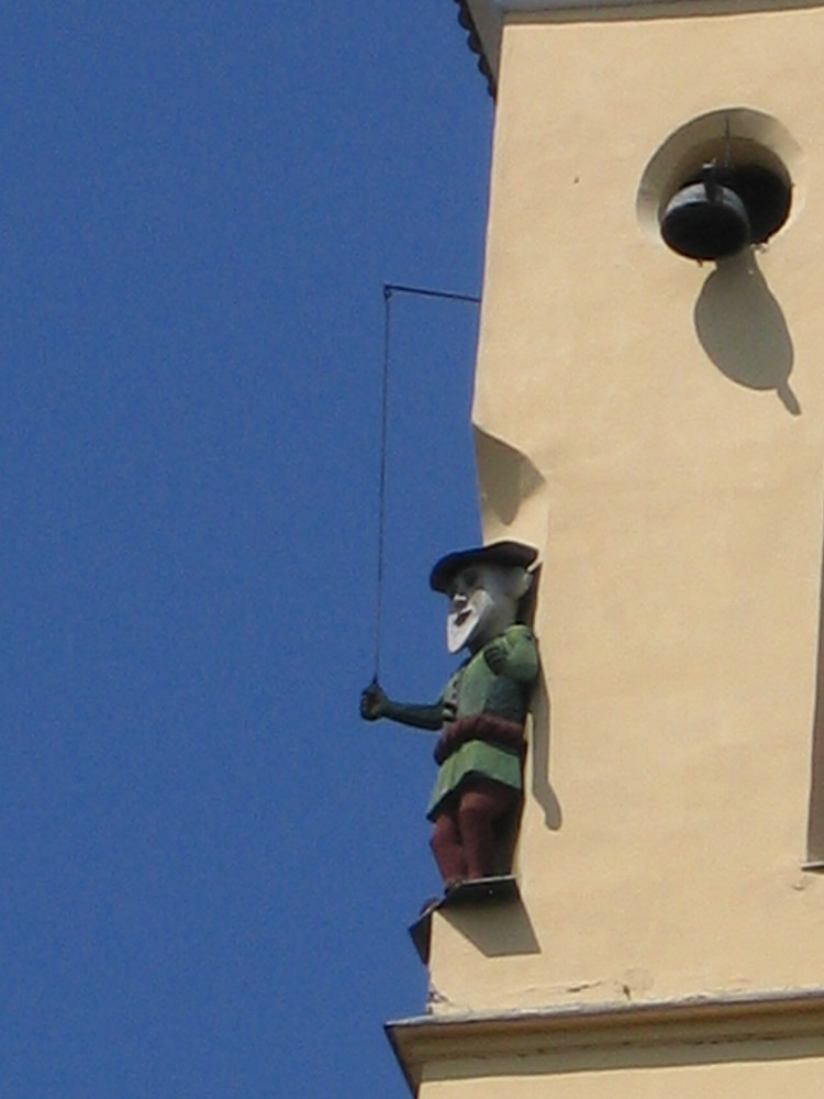 An der Margaretenkirche in Mediasch wird die Zeit von einem "Glockenmännchen" geschlagen. |