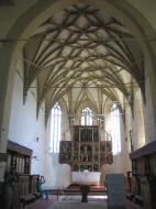 Im Inneren der Kirchenburg von Bierthälm. Allein schon wegen dem wertvollen Chorgestühl lohnt sich die Kirche anzusehen. |