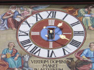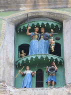 Die Figuren in dem Stundturm stehen für den Tag und die Nacht, für die Gerechtigkeit und für die Justiz. |