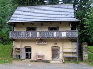 Auch die landwirtschaftlichen Geräte, Werkzeuge, Behälter, Teller und Löffel bestehen aus diesem Material. Reiche Bauernhäuser wechseln sich mit Gebäuden von sozial schwächer gestellten Personen, ab. Die Wände und Decken bildeten quer aufeinander genagelte Balken. Die Ritzen zwischen den Balken wurden mit Moos, Reisig und Erde abgedichtet. Im Mittelpunkt der Wohnungen stand immer eine Feuerstelle, jedoch ohne Kamin. Der Rauch wurde aus der Wohnung in den Speicher geleitet und dort sogar zum Räuchern von Fleisch verwendet.