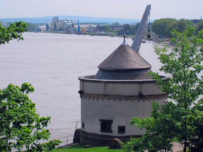 Der "Alte Krahnen" aus dem 16. Jh. in Andernach diente in erster Linie zum Verladen von Mühlsteinen, Tuff und Wein |