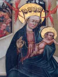 Besonderheit hat das Gnadenbild am linken Seitenaltar: Maria hat 6 Finger